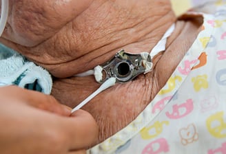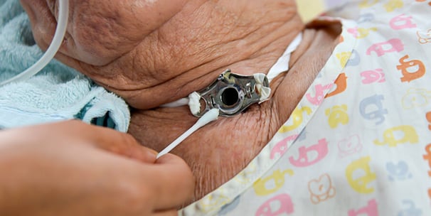 Tracheostomy care, wound dressing, and tube management by trained caregivers for optimal health support.